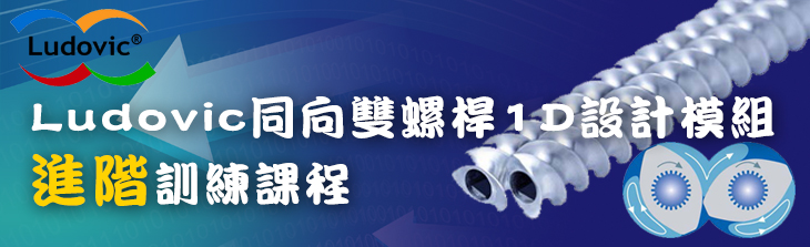 Ludovic是法國Science Consultant基於巴黎礦業公司與法國農業研究院所支持的研究成果上所開發的同向雙螺桿1D設計軟體, 主要功能在於評估同向雙螺桿押出機內部所發生的熱機械效應 : 如溫度、壓力、剪切率、滯留時間等參數; 以及索衍生的材料物性變化如黏度、反應生成物轉換率、熔融比例等等. 其內建DOE參數分析功能可協助使用者決定機台的最佳操作視窗. 目前應用產品領域包含了短纖複合材料造粒、敏感性材料製程(爆炸性材料/含澱粉材質/醫藥材料) 、反應押出等相關應用